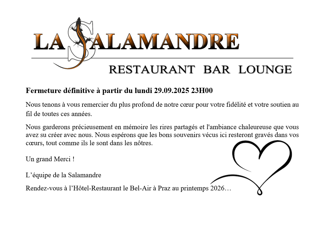 Laura Schürch et Vincent Grisel ainsi que toute l’équipe du Restaurant La Salamandre